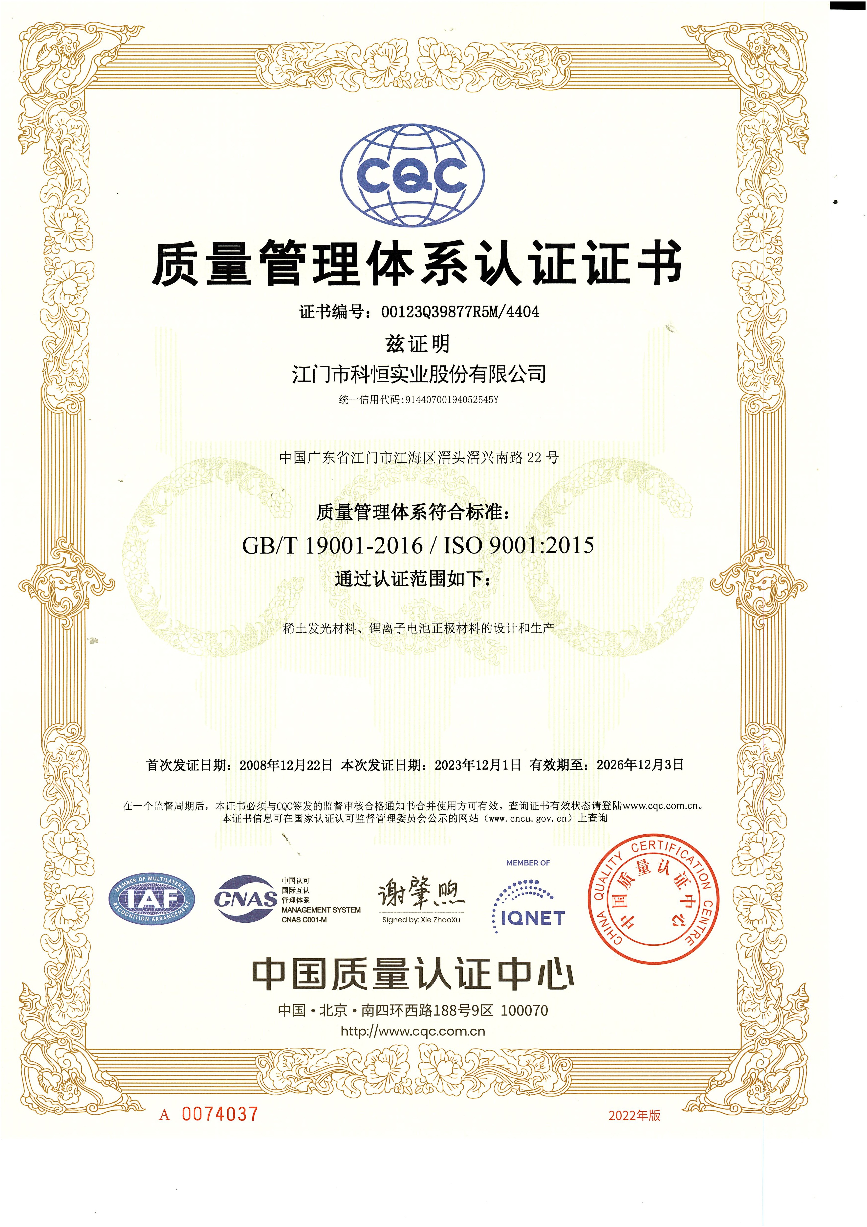 科恒堅持“科技卓越、永恒追求、質(zhì)量第一、客戶(hù)至上”的質(zhì)量方針,設立各級質(zhì)量控制體系,保證產(chǎn)品質(zhì)量。公司先后通過(guò)了ISO9001質(zhì)量管理體系認證和ISO14001環(huán)境管理體系認證。公司以滿(mǎn)足客戶(hù)需求為宗旨,以卓越的科技成果、完善的制造過(guò)程,制造一流的產(chǎn)品、增值的服務(wù)、共享的價(jià)值,讓客戶(hù)滿(mǎn)意。